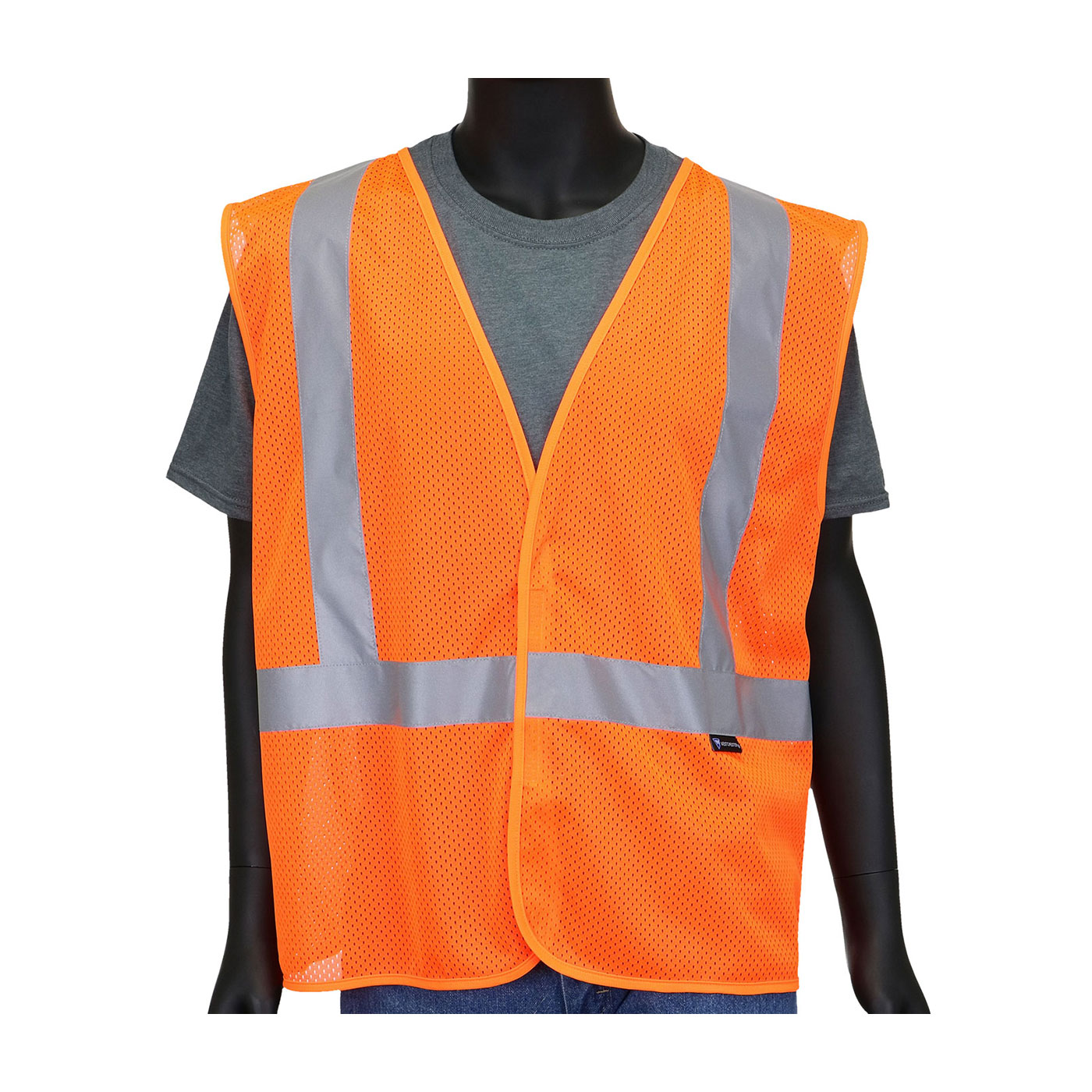 PIP 47206NP/5XL Economy High Visibility Safety Vest 5XL Hi-Viz Orange Polyester Mesh Hook and Loop Closure ANSI Class: Class 2 ANSI/ISEA 107-2015 Class 2 Type R2