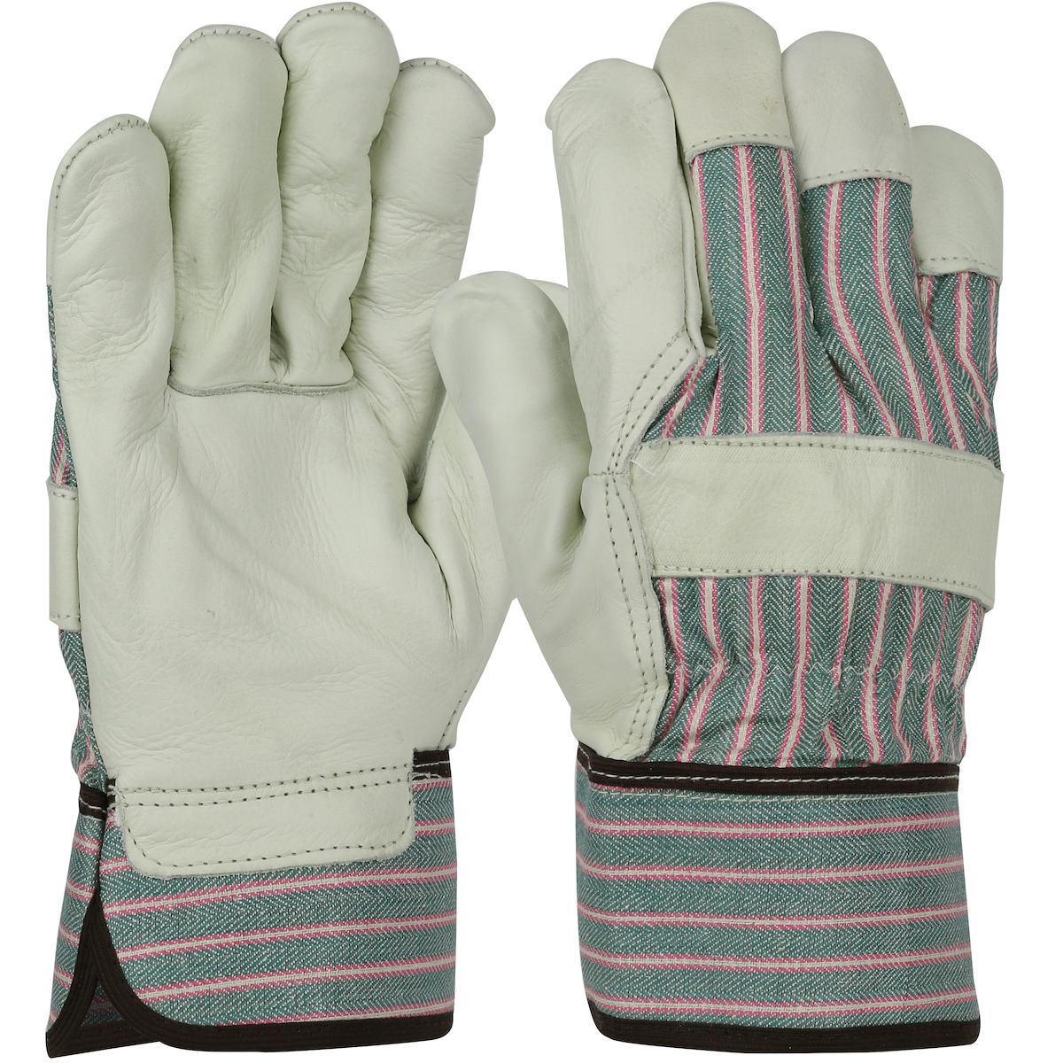 PIP 5150/S 5150 Unisex General Purpose Gloves, Work, Gunn Cut/Wing Thumb Style, Top Grain Cowhide Leather Palm, Green/Pink, Safety Cuff, Uncoated Coating, Unlined Lining