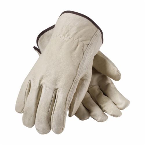 PIP 70-361/M 70-361 Economy Grade General Purpose Gloves, Driver, Keystone Thumb Style, Top Grain Pigskin Leather Palm, Natural, Slip-On Cuff, Uncoated Coating, Resists: Moisture, Unlined Lining