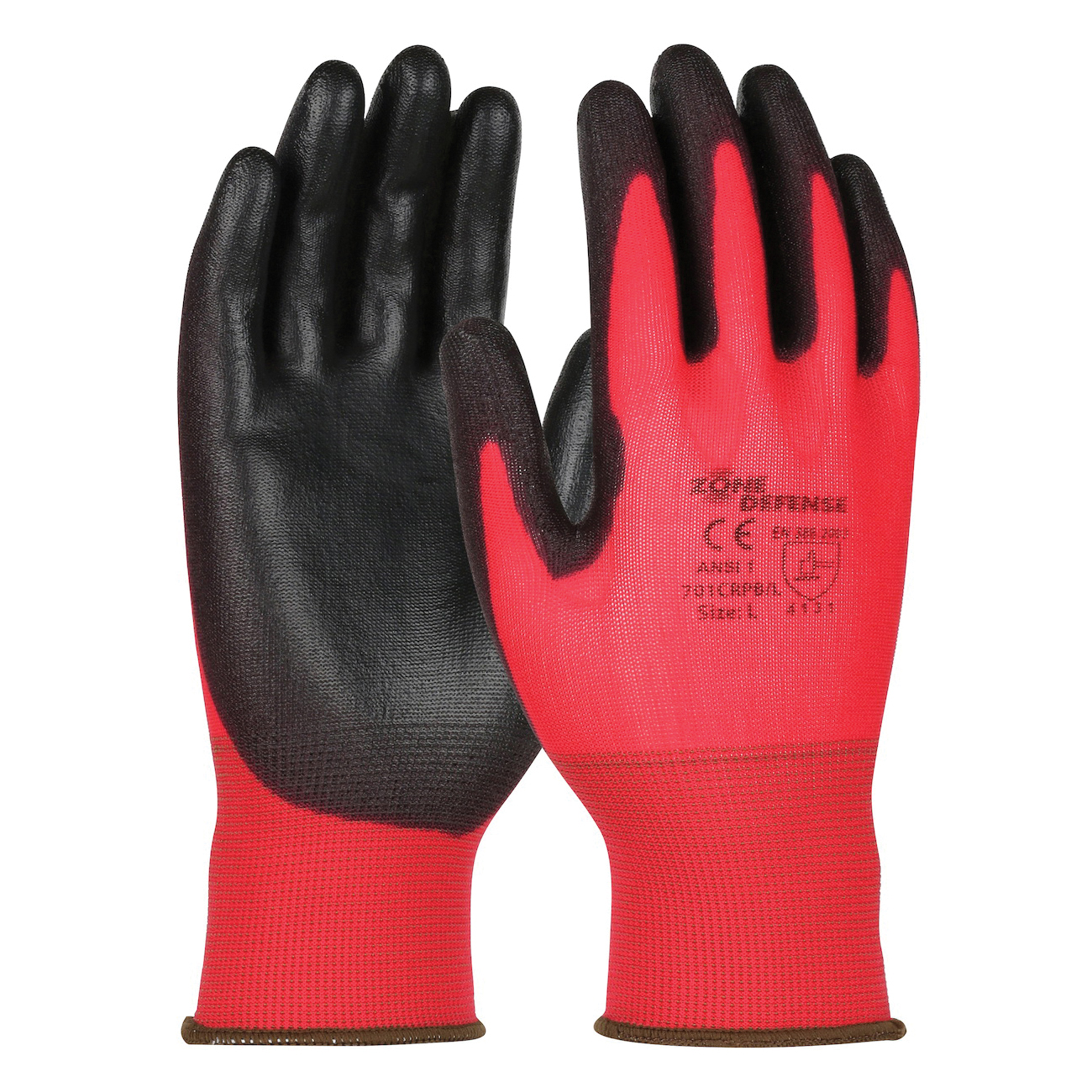 - Coating:PolyurethaneCoating Coverage:PalmColor:Black/RedCuff Style:Knit WristGlove Type:WorkLength:8.7 inMaterial:NylonPalm Material:PolyurethaneResists:Cut and PunctureSeries:701CRPBSize:SStyle:SeamlessType:Unisex