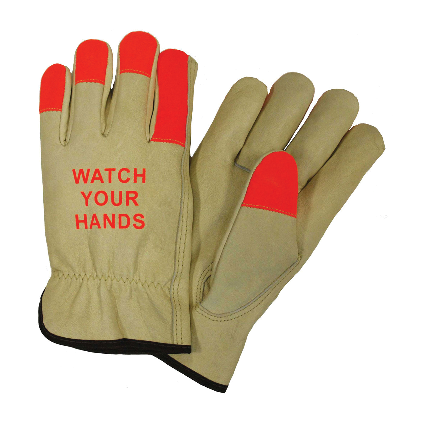 PIP 990KOT/XL 990KOT Unisex General Purpose Gloves Driver Gunn Cut/Keystone Thumb Style XL Grain Cowhide Leather Palm Hi-Viz Orange/Tan Slip-On Cuff Uncoated Coating Resists: Heat Unlined Lining