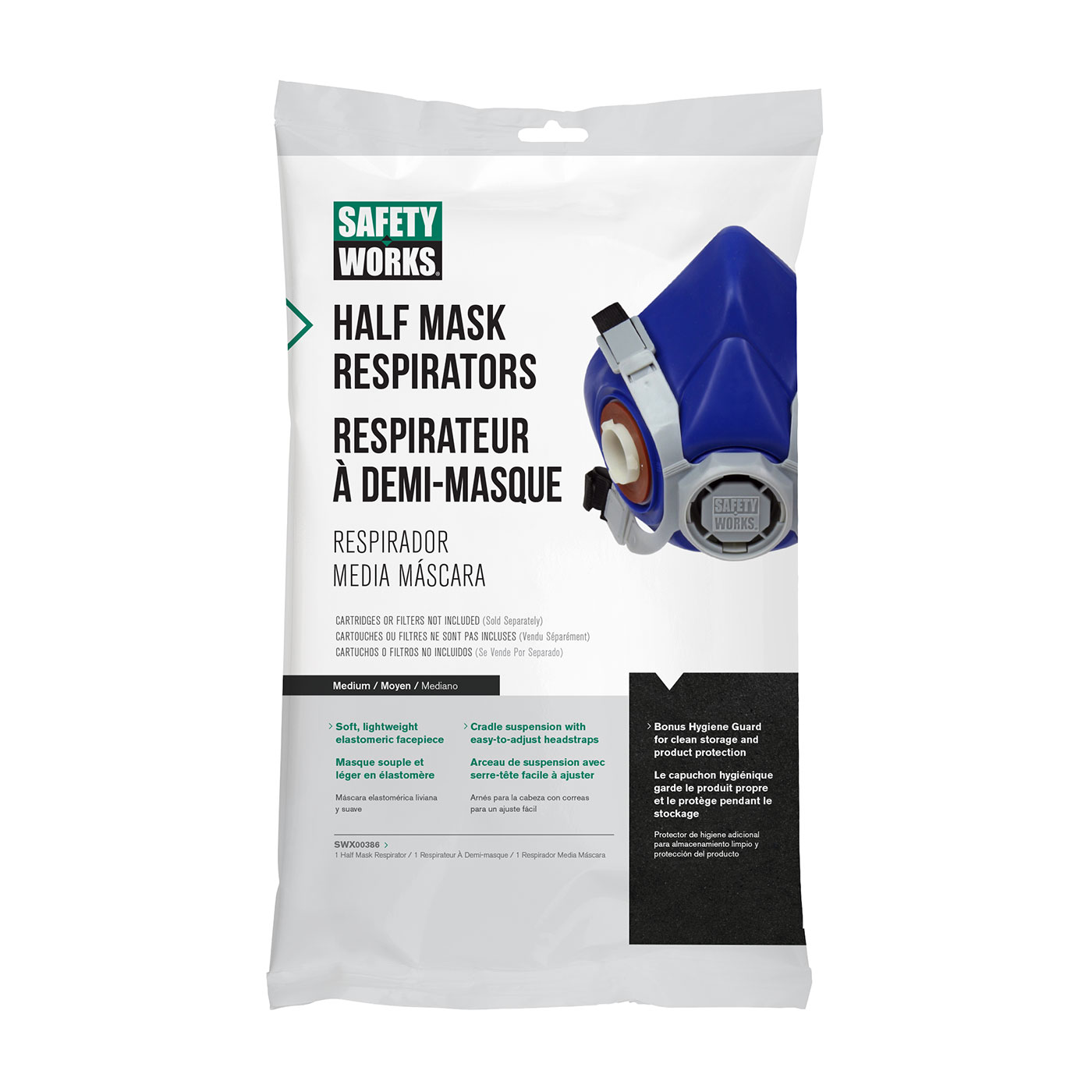 Safety Works SWX00386 Lightweight Reusable Half Mask Respirator M Strap Suspension Bayonet Connection