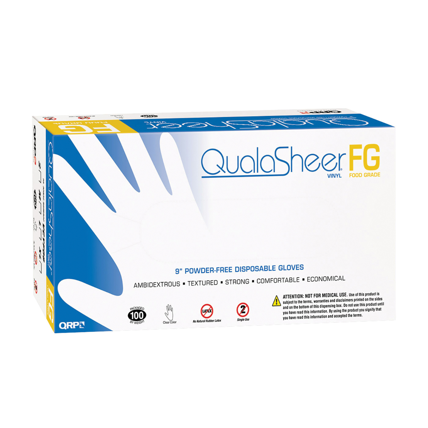 QRP QualaSheer FG VCYF09XL Single-Use Disposable Gloves XL Polyvinyl Chloride Clear 9 in L Powder-Free Micro-Textured 4 mil THK Application Type: Food Grade Ambidextrous Hand