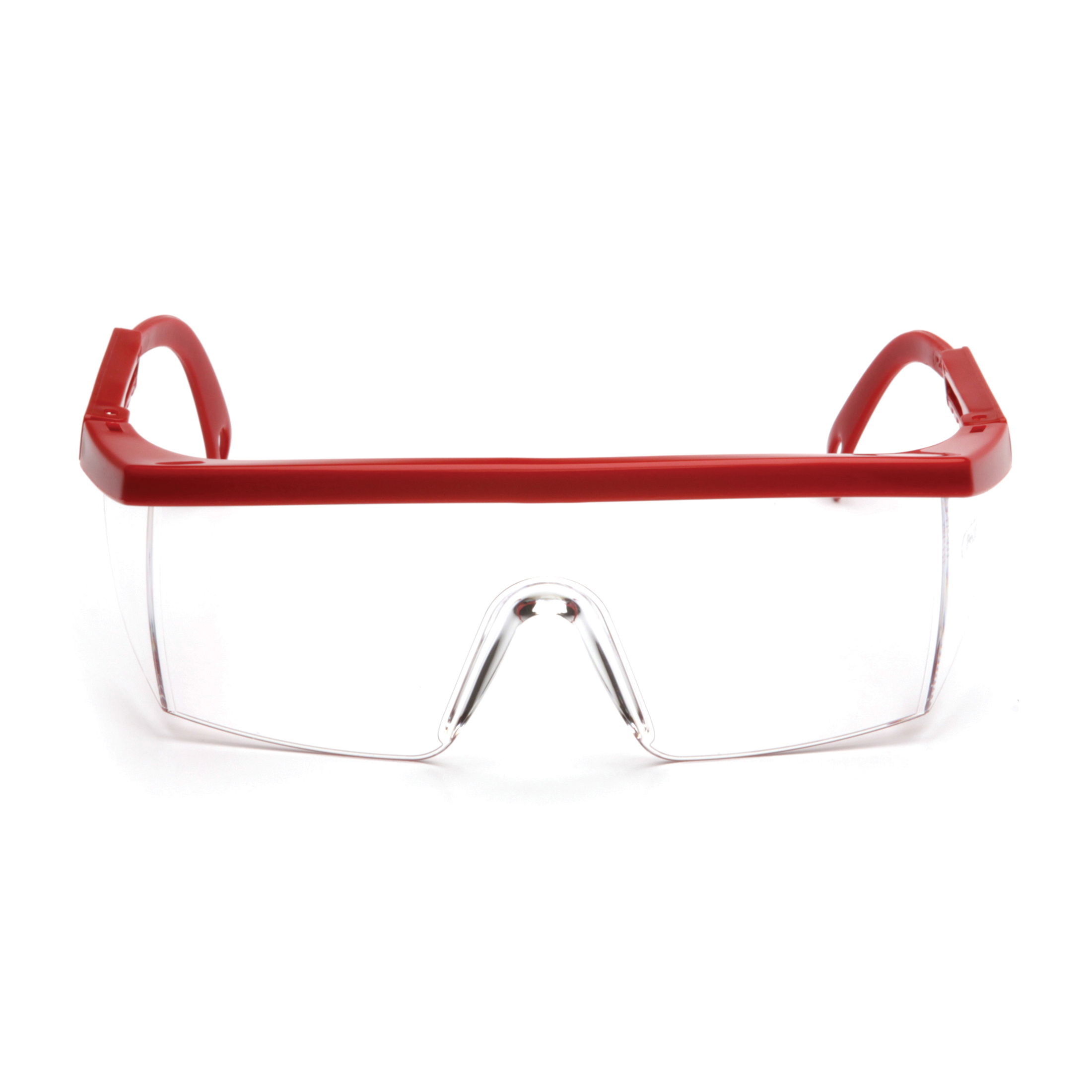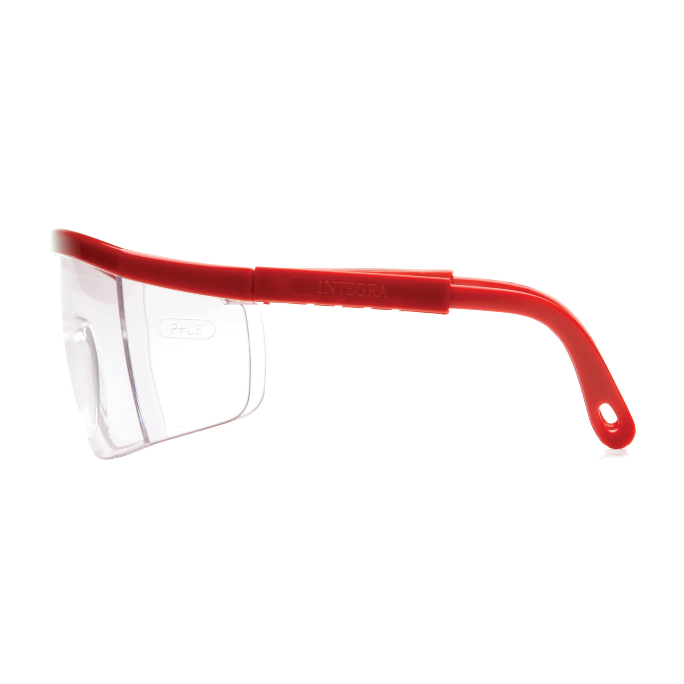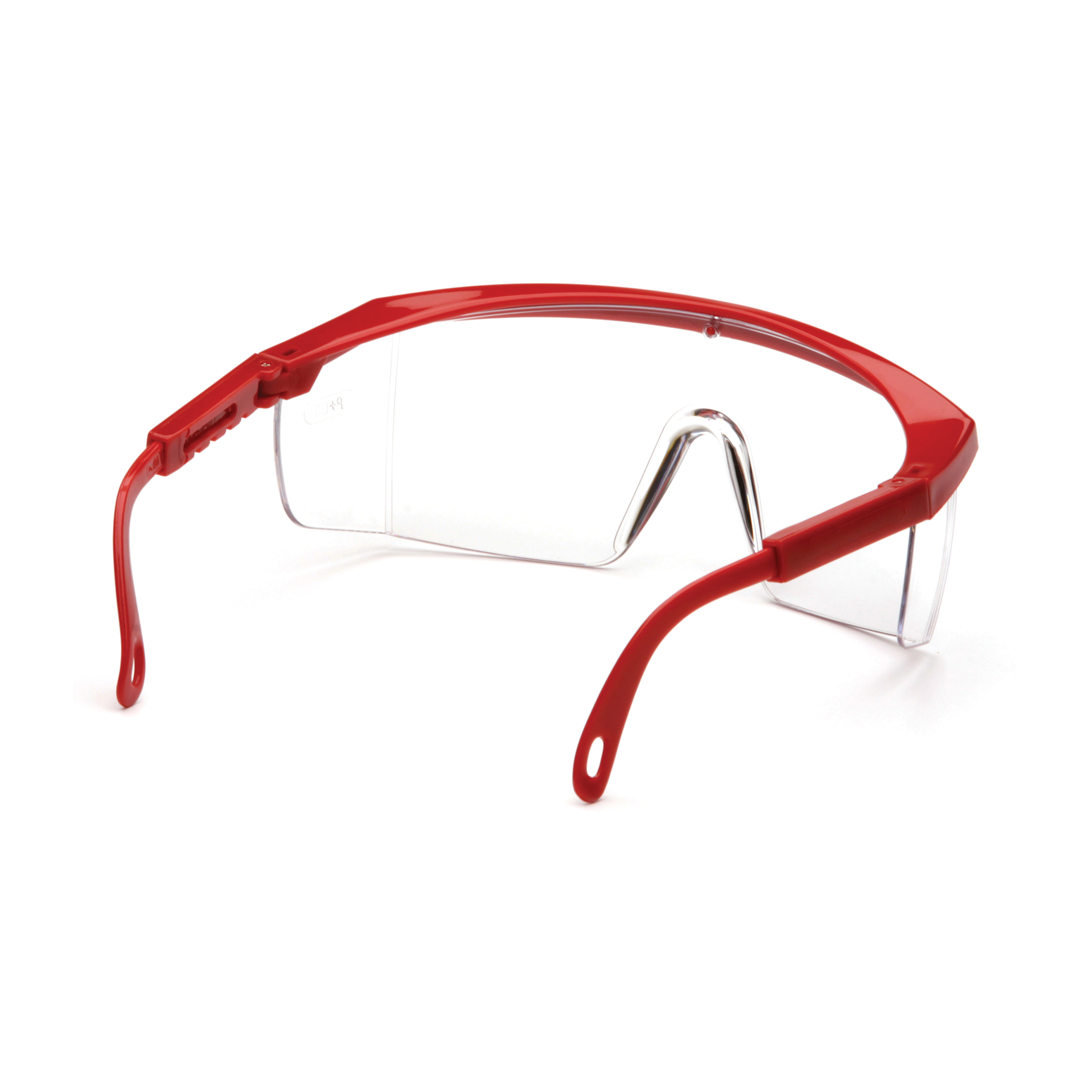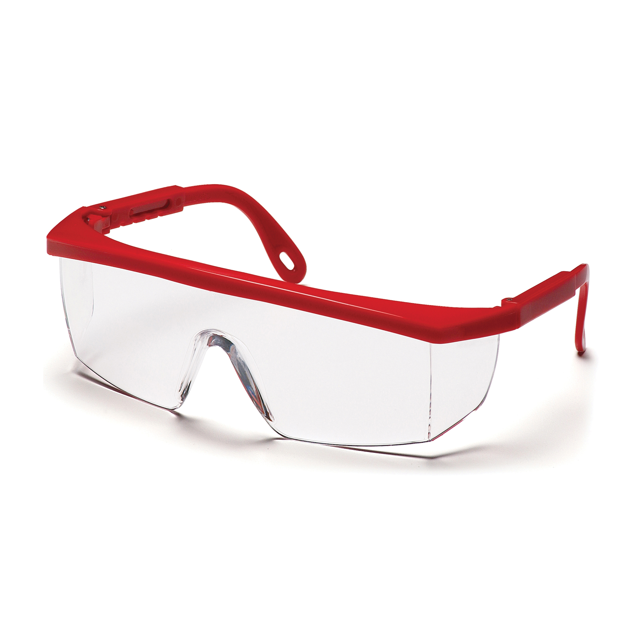 Pyramex SR410S Single Lens Safety Glasses, Anti-Scratch, Clear Lens, Red, Nylon 6.6 Frame, Polycarbonate Lens, ANSI Z87.1, AS/NZS 1337, CAN/CSA Z94.3-15, CE EN166, MIL-PRF 32432