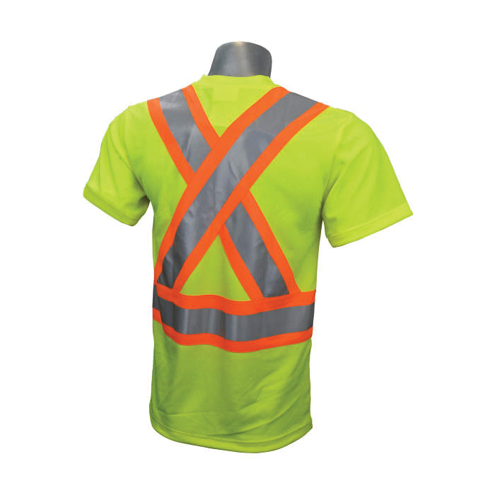 - Color:Black/Hi-Viz GreenMaterial:PolyesterNumber of Pockets:1Series:ST11BXSize:3XLType:Black Bottom Short Sleeve X-Back
