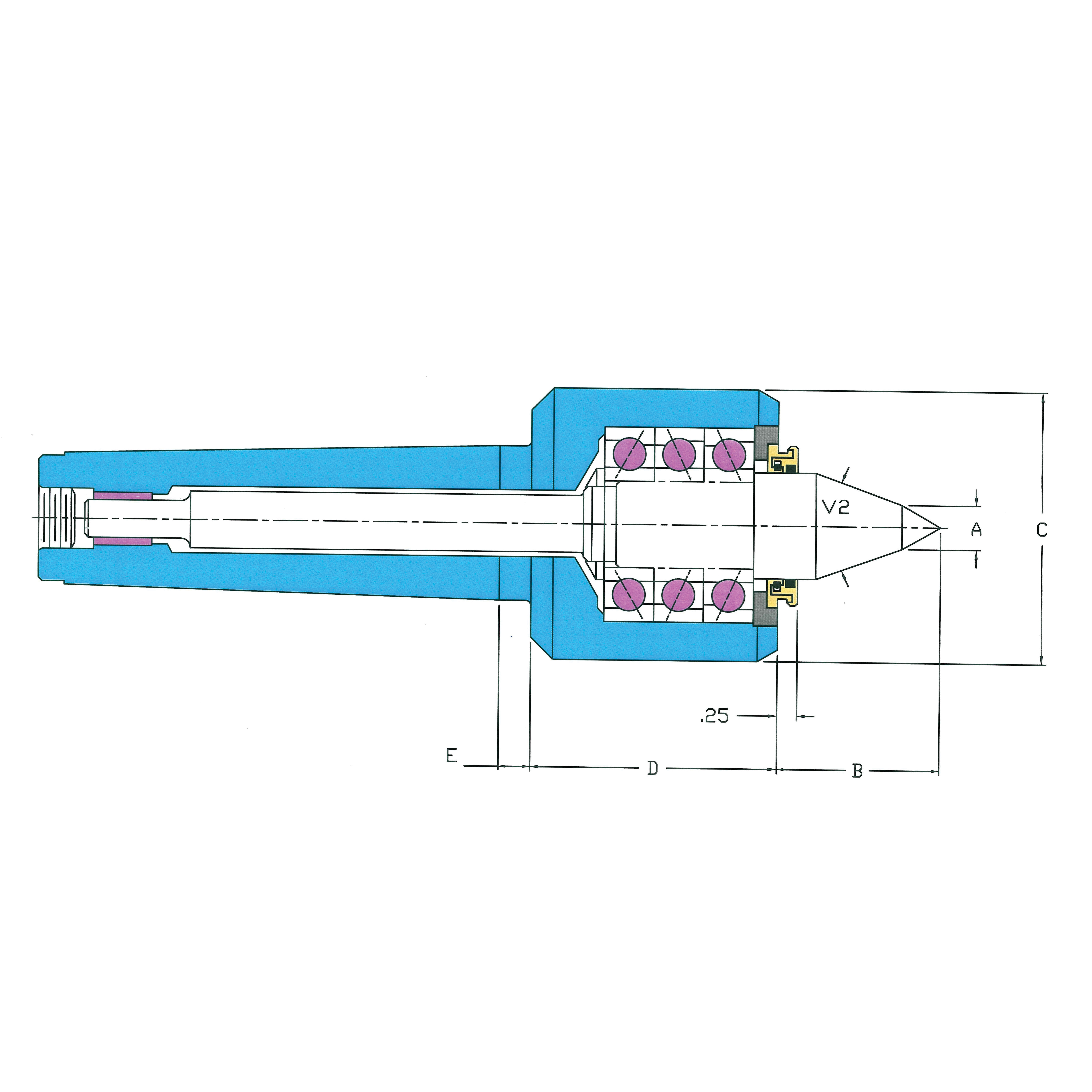 - Accuracy:+/-0.00004 inHead Diameter:3.07 inHead Length:2.78 inMaterial:Hardened Tool SteelMaximum Speed:5000 rpmMaximum Workpiece Weight:1700 lbPoint Diameter:0.56 inPoint Length:2-1/4 inPoint Type:TracerShank Type:Morse TaperTaper Size:#5