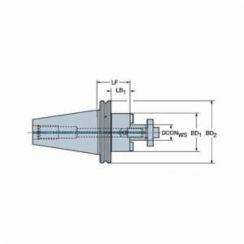 Sandvik Coromant Adapter, 0.6299 in Diameter Hole, Taper x Arbor Shank, ISO 40 Taper, 1.4173 in Diameter Nose, 3.937 in Projection, 6.6299 in Overall Length, 2.5019 in Overall Diameter, 0.6299 in Shank Connection, ANSI Code: A1B05-40 16 100, ISO Code: A1B05-40 16 100
