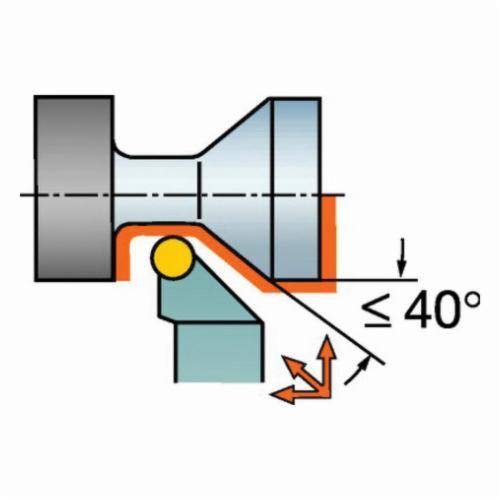 Sandvik Coromant Shank Tool, Series: T-Max P, PRGNR/L Tool Holder, 9.8425 in Overall Length, Rectangle Shank, 1.5748 in H x 1.5748 in W Shank, Insert Compatibility: RNMG 250900 (MIIDM) and RNMG 86 (MIIDN), 1 Insert Seat, Left Hand Cutting Direction, ANSI Code: PRGNL 4040S 25, ISO Code: PRGNL 4040S 25, -6 deg Rake, Steel