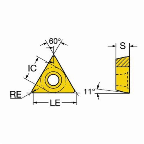 - ANSI Code:TPMT 3(2.5)1-MF 1125Chipbreaker:MFCorner Radius:0.0156 inCountry of Origin:INCutting Direction:NeutralFinish:PVD-TiAlN+AlCr2O3 Coated, TiAlN/AlCr2O3For Use On:Stainless Steel, Steel and Heat-Resistant Super AlloysHole Diameter:0.1732 inIn Stock:YesIncluded Angle:60 degInscribed Circle:3/8 inInsert Size:3(2.5)1Insert Style:TPMTISO Code:TPMT 16 T3 04-MF 1125Length:0.6495 inManufacturer Name:Sandvik CoromantManufacturer's Grade:1125Material:CarbideMaterial Grade:M, P, SMaximum Depth of Cut:0.079 inRake:PositiveRelief Angle:11 degSeat Size:16Series:CoroTurn® 111Shape:TriangularThickness:0.1562 inType:1-Sided Basic Shape