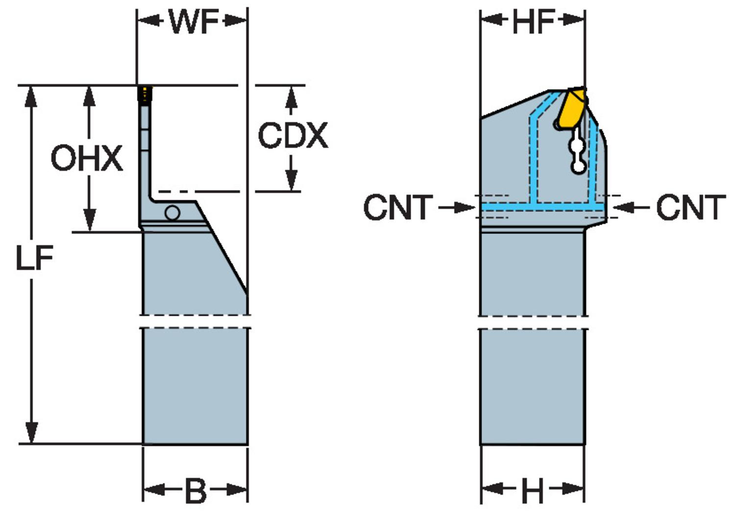 Sandvik Coromant 6976227 CoroCut QD Shank Tool With Internal Coolant, Insert Compatibility: QD-NH-0400-0002-CM, H Insert Seat, Right Hand Cutting, External, 1 in H x 1 in W Shank, QD-R/LF..C..A Toolholder