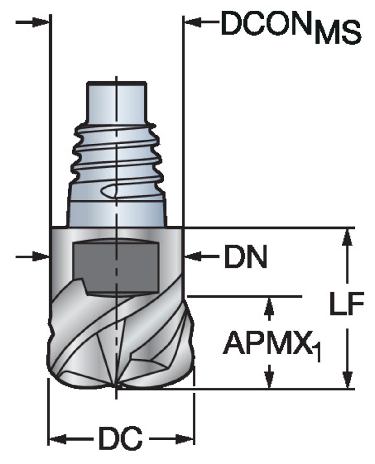 Sandvik Coromant Milling Head, Metric Optimized, Series: CoroMill® 316, 316..HM..D Milling Tip, End Mill, 12 mm Cutting Dia, 7 mm Maximum Depth of Cut, 4 Flutes, D, HM Chipbreaker, 1.5 mm Corner Radius, Manufacturer's Grade: 6060, ANSI Code: 316-12HM438-12015D 6060, ISO Code: 316-12HM438-12015D 6060, Brazed Ceramic, Uncoated, Material Grade: S