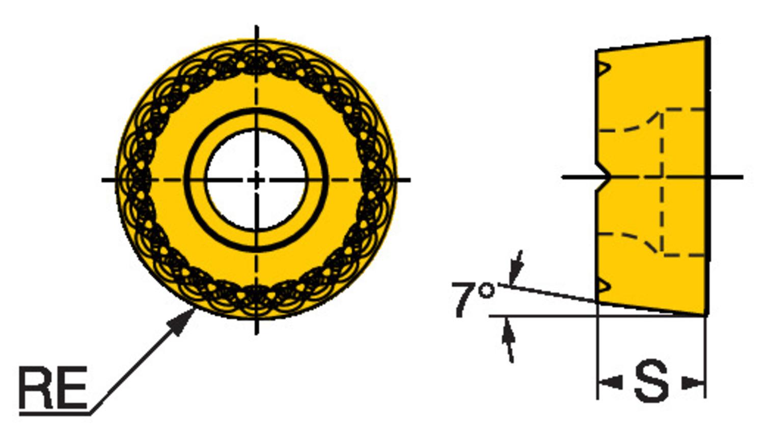 - ANSI Code:RCMT 12 04 MP-L3 1105Chipbreaker:1-Sided L3Corner Radius:6 mmCutting Direction:Left/Right HandFinish:PVD-TiAlN Coated, TiAlNFor Use On:Heat-Resistant Super Alloy, Steel and Stainless SteelHole Diameter:6 to 80 mmInscribed Circle:12 mmInsert Size:1204Insert Style:RCMTISO Code:RCMT 12 04 MP-L3 1105Manufacturer's Grade:1105Material:CarbideRelief Angle:7 degSeries:CoroTurn® 107Shape:RoundThickness:4.7625 mmCountry of Origin:USManufacturer Name:Sandvik Coromant