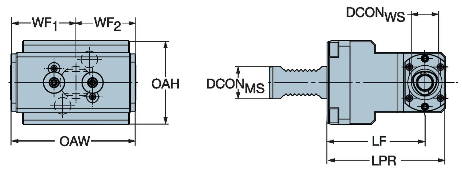 Sandvik Coromant Clamping Unit, 90 deg Internal Face ID Manual Right Hand Turning, Series: Coromant Capto®, 4.6063 in Overall Width, ANSI Code: C3-TRI-IX30A-DT, ISO Code: C3-TRI-IX30A-DT, C3 System Size Workpiece Side