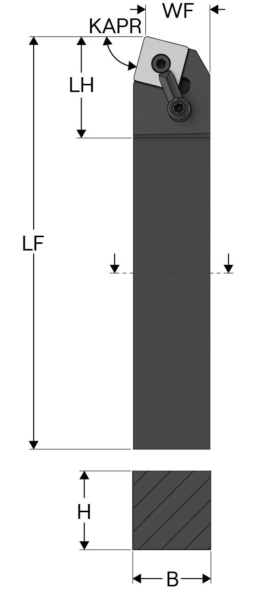 - ANSI Code:MSBNR3232P19Back of Bar to Cutting Edge:27 mmCutting Direction:Right HandHead Length:45 mmInscribed Circle:19.05 mmInsert Compatibility:SNM..1906..Insert Seat Size:6Lead Angle:75 degMaterial:SteelOverall Length:170 mmRake:NegativeShank Size:32 mm WShank Type:SquareTool Holder Style:MSBN