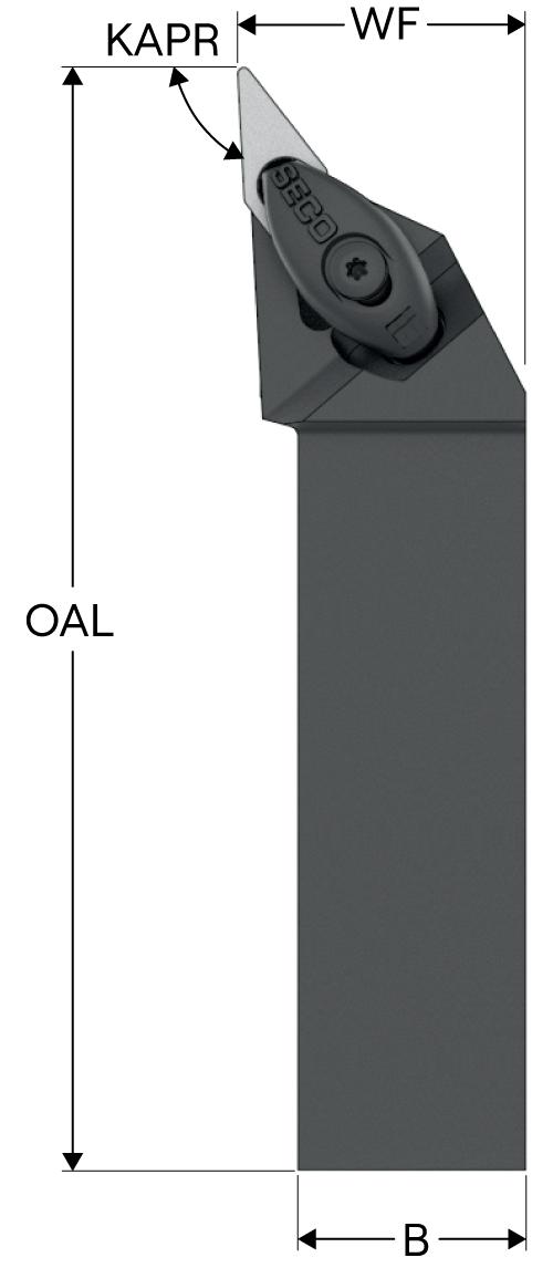 Seco 03282286 High Pressure ISO Turning Holder With Jetstream Tooling Integrated Coolant Inlet, ANSI Code: DVJBL-16-3XJETI, DVJB Tool Holder, VB..33.. Insert, Left Hand Cutting, 1 in H x 1 in W Square Shank, 93 deg Lead Angle, Positive Rake, 4.803 in OAL