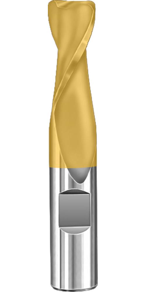 SGS 38248 3CR Center Cutting Positive Rake Regular Length Single End Mill, 3/8 in Dia Cutter, 0.02 in Corner Radius, 1 in Length of Cut, 2 Flutes, 3/8 in Dia Shank, 2-1/2 in OAL, TiN