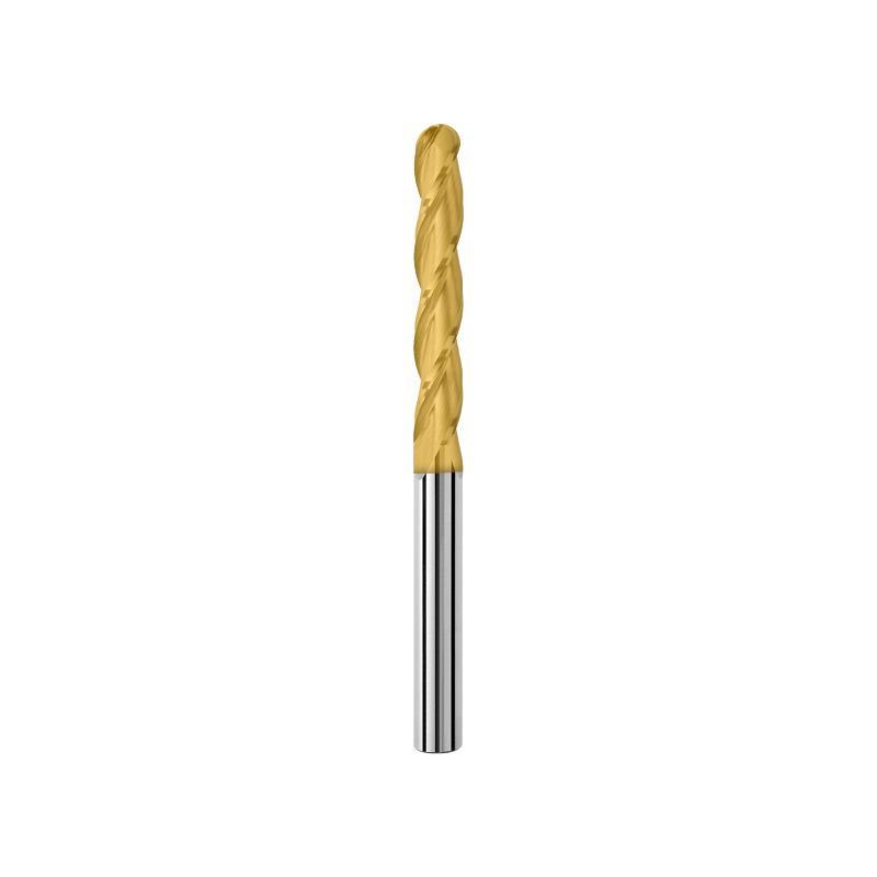 SGS 49595 X5B Ball Nose End Extra Long Length Metric End Mill, 25 mm Dia Cutter, 75 mm Length of Cut, 3 Flutes, 25 mm Dia Shank, 150 mm OAL, TiN