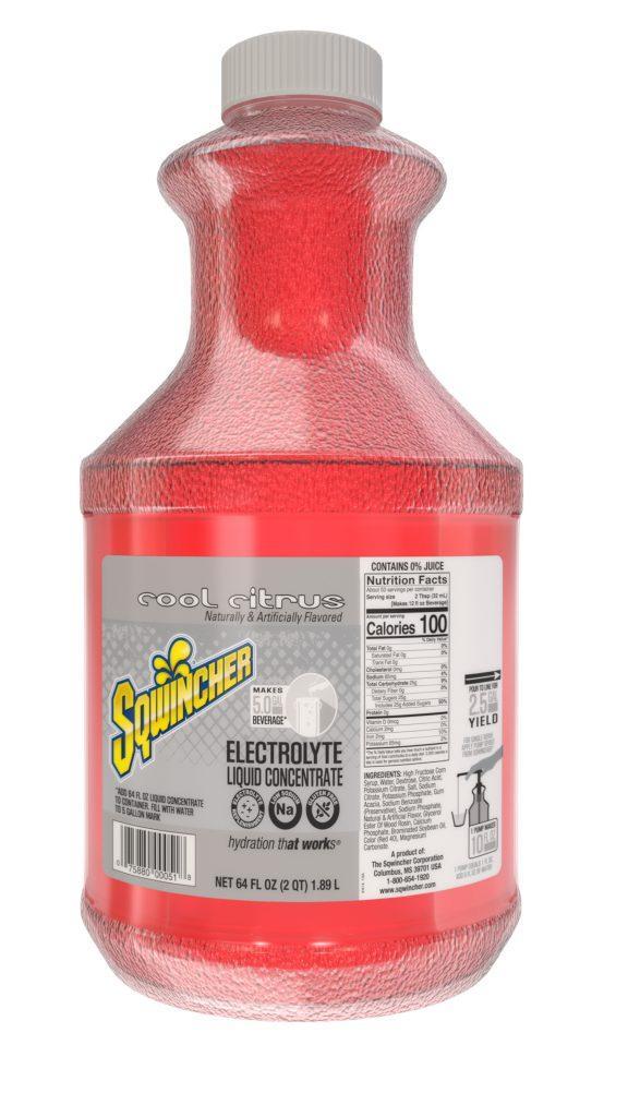 Sqwincher® Sports Drink Mix, 64 oz Container, Bottle Container, 5 gal Yield, Liquid Form, Cool Citrus Flavor