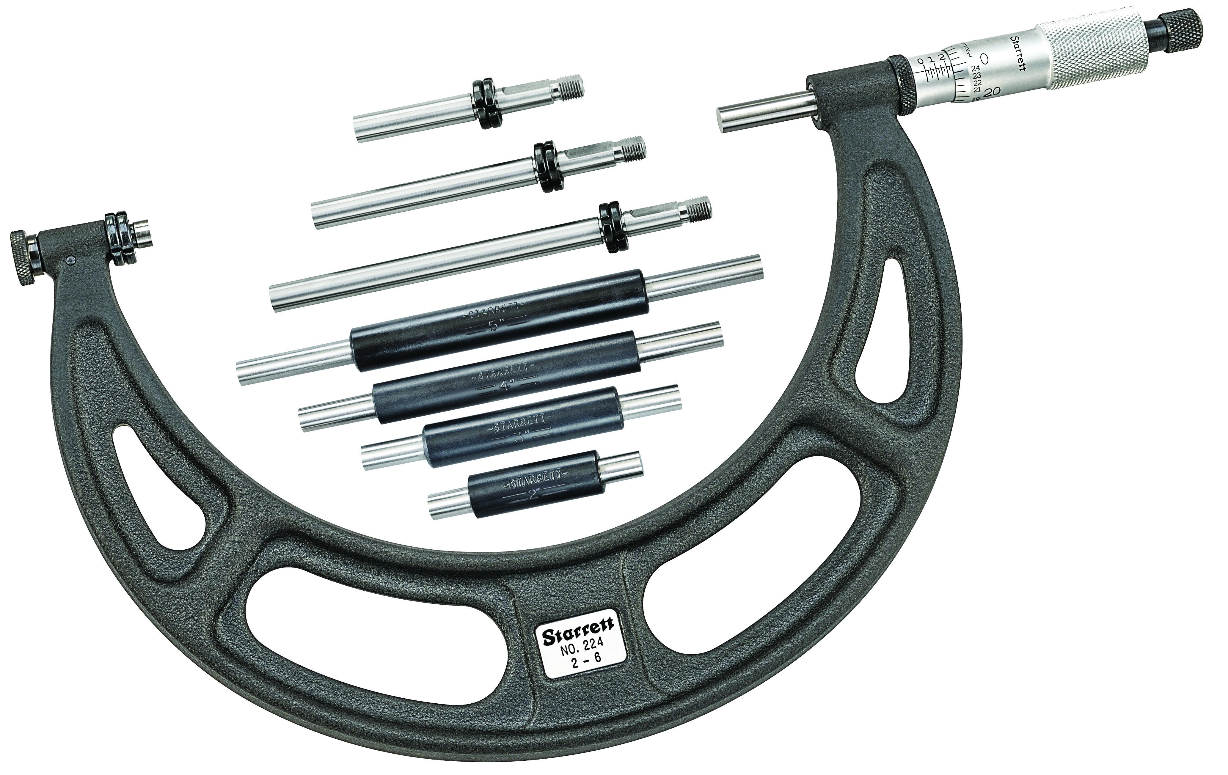 - Each micrometer is equipped with a series of easily interchangeable anvils, thus providing the full range in steps of 1in with a single micrometer