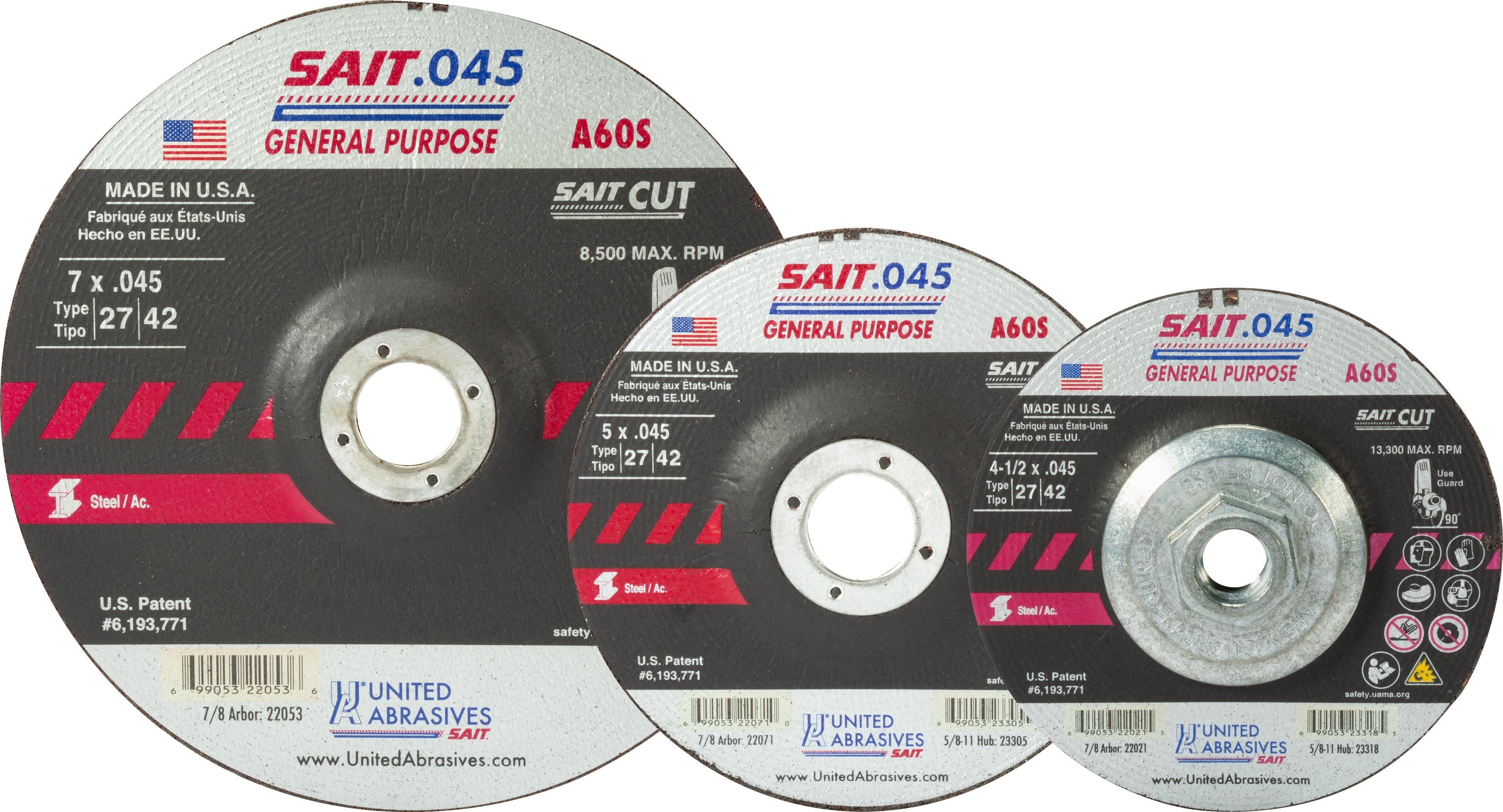 United Abrasives-SAIT 22047 General Purpose Depressed Center Wheel, 6 in Dia x 0.045 in THK, 7/8 in Center Hole, 60 Grit, Aluminum Oxide Abrasive