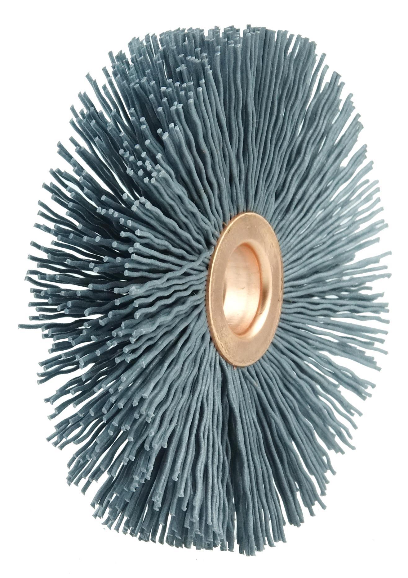 Nylox 16263 Small Diameter Carbide Burr, 3 in Dia Brush, 1/2 in W Face, 0.04 in Dia Crimped/Round Filament/Wire, 1/2 in Arbor Hole