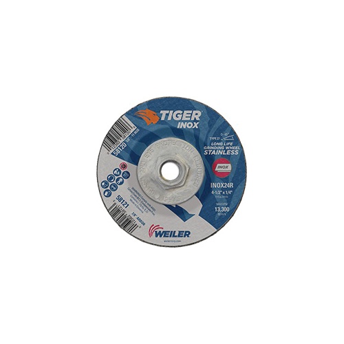 Tiger Inox 58120 Contaminant-Free Performance Line Depressed Center Grinding Wheel, 4-1/2 in Dia 1/4 in THK, 24 Grit, White Aluminum Oxide Abrasive